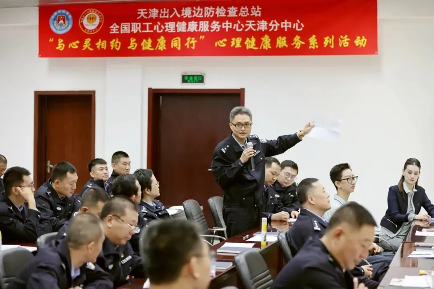 2023年10月24日上午,全国职工心理健康服务中心天津分中心携手天津边检总站开展的“与心灵相约 与健康同行”心理健康服务系列活动拉开帷幕,首场专题互动讲座在天津边检站举办。