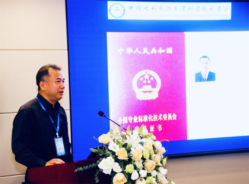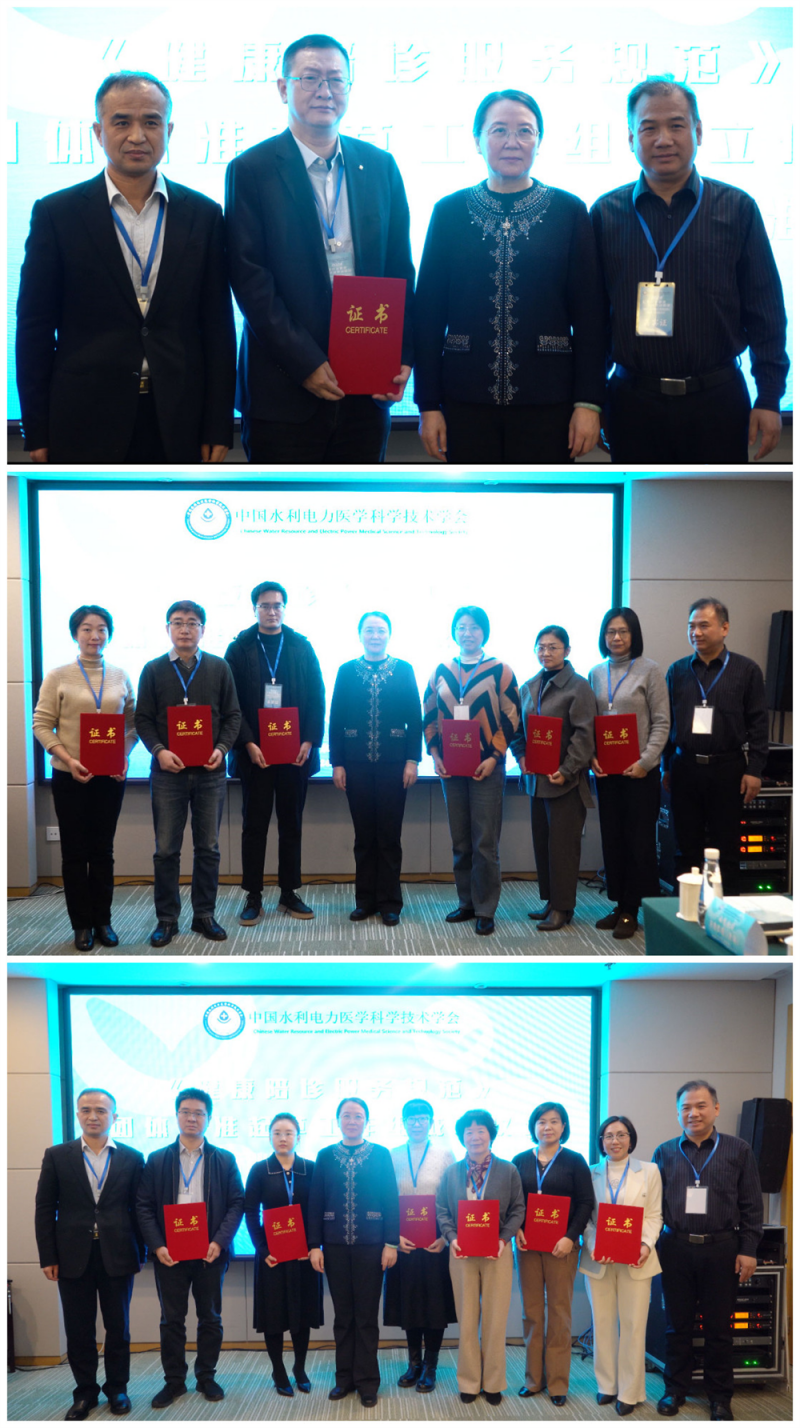 中国水利电力医学科学技术学会办公室主任办公室主任、标准化技术委员会秘书长彭雪琴宣读批文并向工作组成员单位颁发证书。