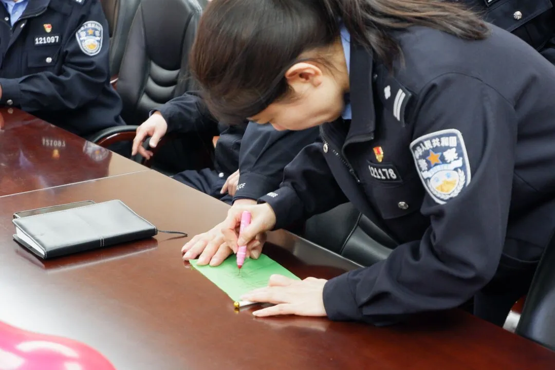 在活动最后,民警职工在彩纸上绘下自己的手掌,写出过去的改变和对未来的展望,在最中间的爱心中写下对团队的美好祝愿。手手相连,心心相印,在爱心上的祝愿是每位民警职工最真挚的期待,团队的力量将汇聚于此,生生不息。