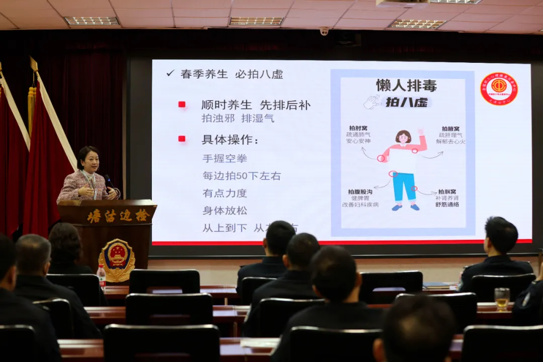 长期处于一线岗位,民警职工们的身体承受着巨大压力,身体部位经常会出现僵硬或不适的情况。为此,杨媚老师为大家带来简单而实用的“拍八虚”方法。想象一下,在繁忙的工作间隙,你轻轻拍打自己的身体,那些穴位仿佛被“唤醒”,一股暖流从身体深处涌出,仿佛春天的气息已经悄然来临。这不仅是一种身体的调节,更是一种心灵的放松。