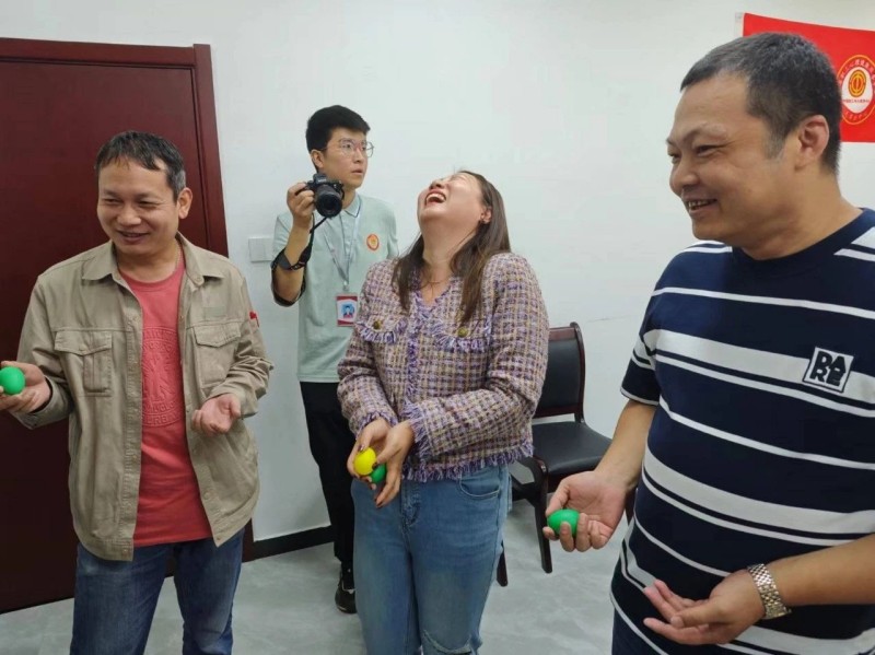 职工们在老师的带领下,职工们一一挑选自己喜欢的乐器,并跟随着音乐的律动,一边敲打,一边体验打击乐器时带给自己身体的各种感官变化。让职工们通过这种方式去感受内心真实的自我,起到调节情绪,达到放松身心,改善认知的作用。