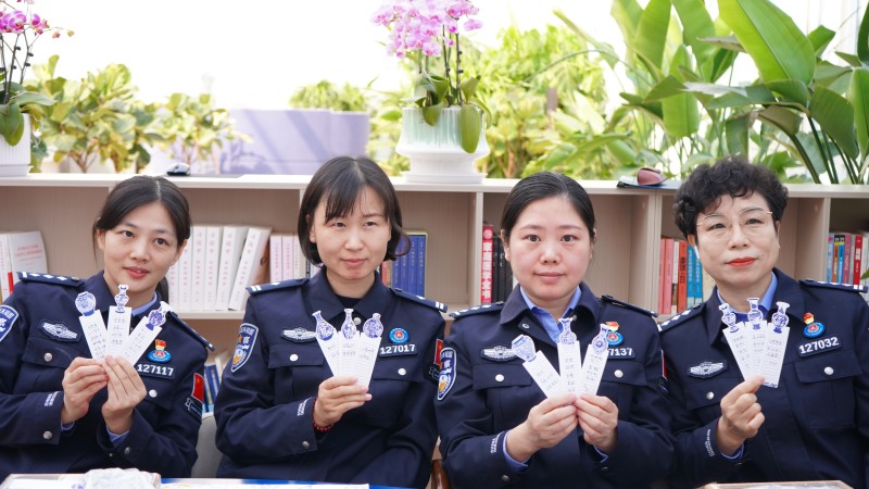 “淬炼之美”手工制作青花瓷环节更是精彩纷呈。女民警们精心挑选心爱的卡片,将对他人生活的美好祝愿与对未来的向往融入其中,一张张美丽的卡片象征着新时代优秀女性的形象。在青花瓷粘画制作完成后,大家纷纷展示自己的成果,分享喜悦与感悟。在一片欢声笑语中,大家不仅感受到了青花瓷的优雅韵味,更体会到了生活的无限乐趣。