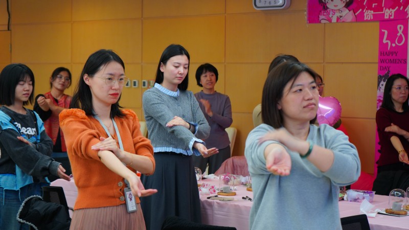 在专家老师的悉心指导下,参与者亲手写下对自己的祝福卡片,寄托着对未来美好生活的向往与期待。专家老师还分享了春季养生穴位知识,倡导通过个人穴位按压来提升身心免疫力和积极性,让女职工们在日常生活中也能轻松实现自我保健。女职工们在专家老师的带领下进行了心灵呼吸练习。这一环节帮助她们从多重角色的焦虑中抽离出来,重新找回内心的平静与力量,享受了一段宁静而美好的时光。