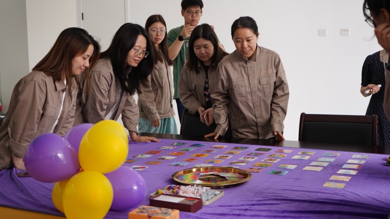 活动伊始,一场别开生面的“肢体破冰游戏——压力山大”迅速打破了现场的氛围,让职工们在轻松愉快的互动中释放了日常工作的压力。随后,天津分中心的专业导师引导职工们通过自我介绍环节,借助卡牌表达个人特质与岗位角色,有效拉近了彼此之间的距离。在深度探索环节,职工们通过抽取OH卡牌,直观投射出潜意识中的沟通困惑与情绪状态,并在导师的引导下深入挖掘卡牌意象与现实工作的联结,成功解码了“高效沟通”与“快乐工作”的内在逻辑。
